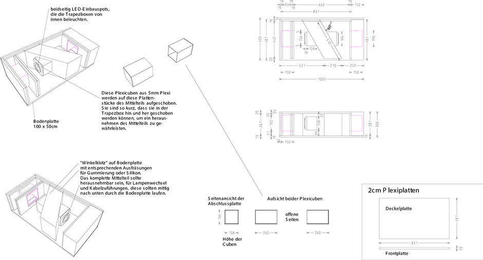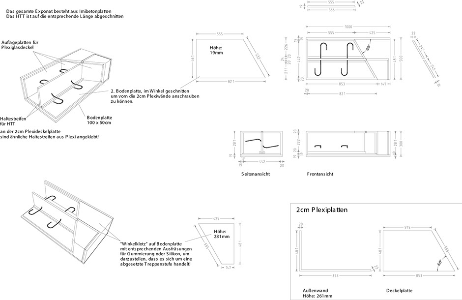 Detailzeichnung Einbau eines Exponates in eine Podeststufe